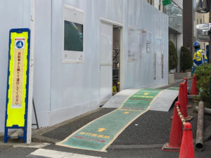 配管が歩道を横断するので、自転車が通れるようにスロープを作る。